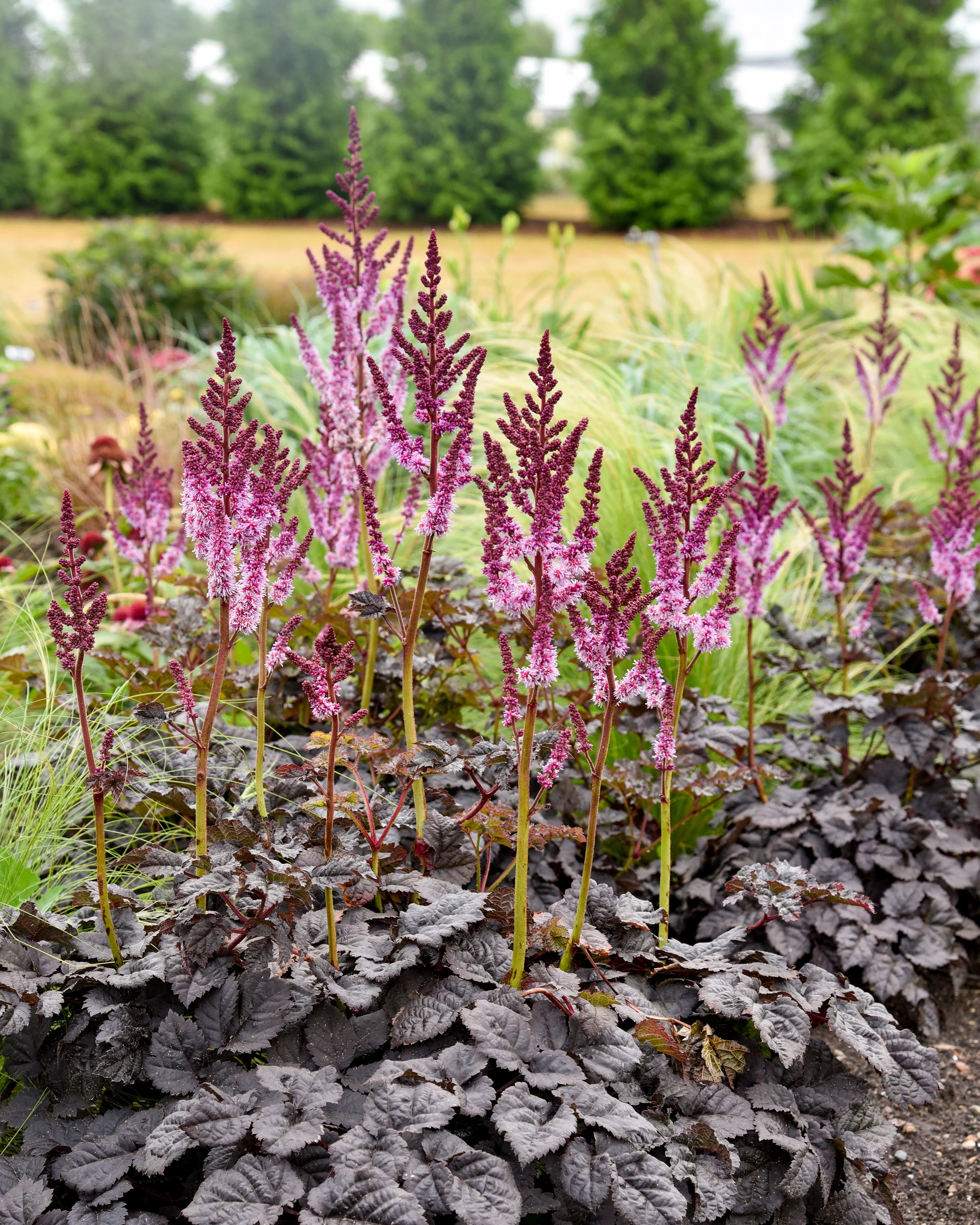 Explore a world of striking contrast, using Astilbe 'Dark Side of the Moon' as the ebony to your ivory. Pair it with zingy green grasses and hostas, or plants with big bright blooms like begonias, and you’ll be set for an out-of-this-world summer synthesis. The incredibly dark foliage of this false goat’s beard is indeed one astonishing feature, put together with its fountains of fluffy purple flowers and there you have one cracking ensemble.