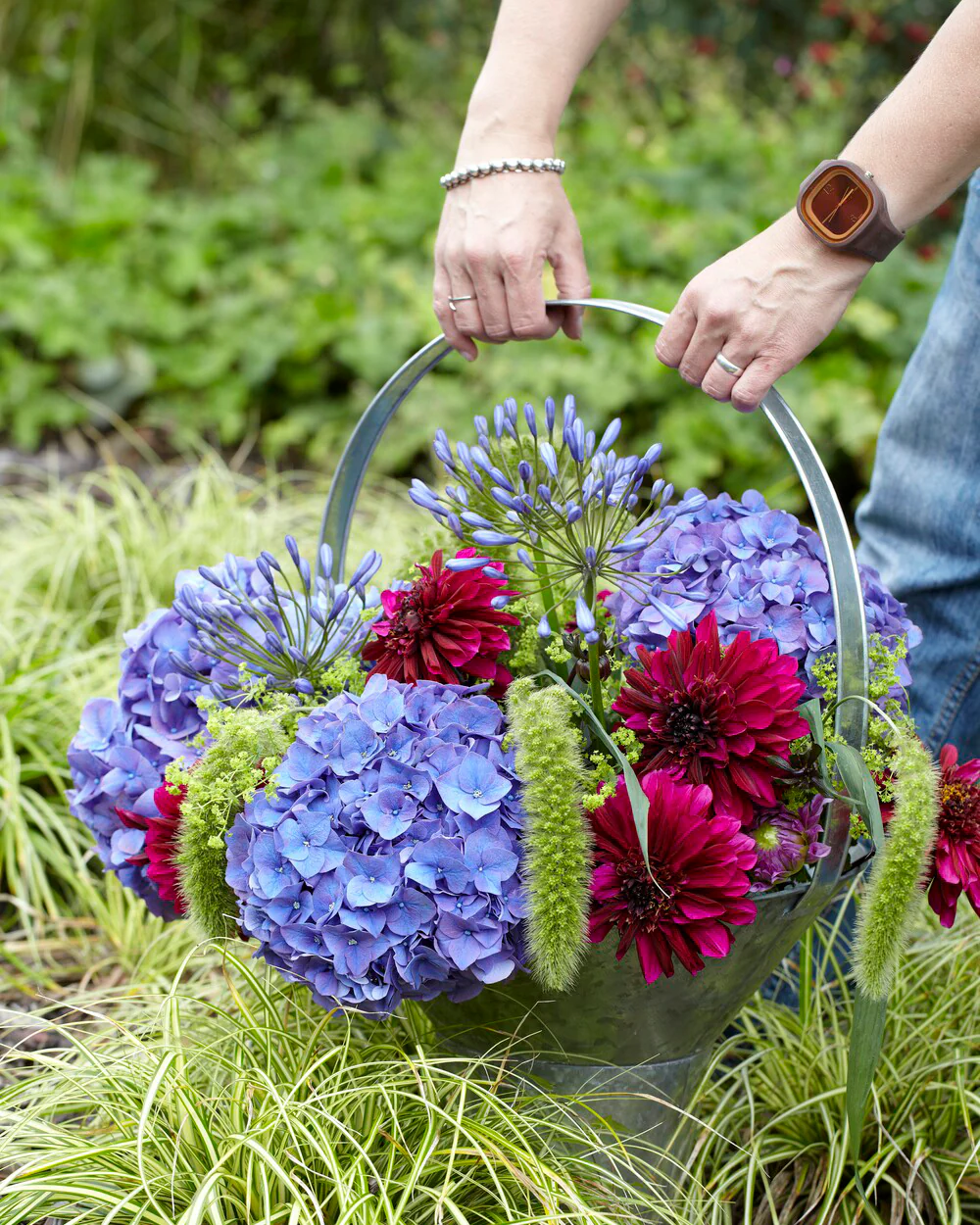 Dahlia 'Purple Haze' is neat and compact, at a height of around 80cm, making a good option for both the border and for containers. Try combining this with other rich-toned dahlias like 'Totally Tangerine' and perennials like Verbena bonariensis or purple-flowered Salvia 'Caradonna' for a sumptuous display. 'Purple Haze' is also a great dahlia for cutting: those anemone flowers with their flattened outer petals and dense centres create lovely contrasts with other dahlia flower-shapes, such as the spiky cactus dahlias, orchid dahlias and of course the big dinnerplate dahlias.